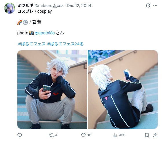 2026年2月15日、鮎川太陽さんは公式Xで、葛葉さんのコスプレ写真を初公開していました。