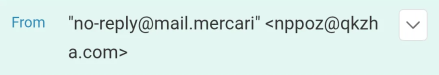 メルカリを装った商品返送通知の詐欺メールは、一見表示名はメルカリを装っていますが、ドメイン名が違うものであることがよくあります。
