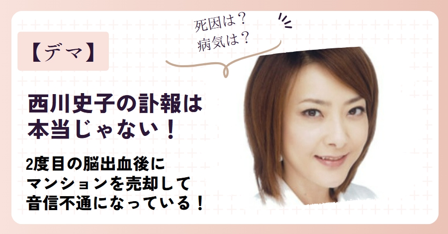 【デマ】西川史子の訃報は本当じゃない!2度目の脳出血後にマンションを売却して音信不通