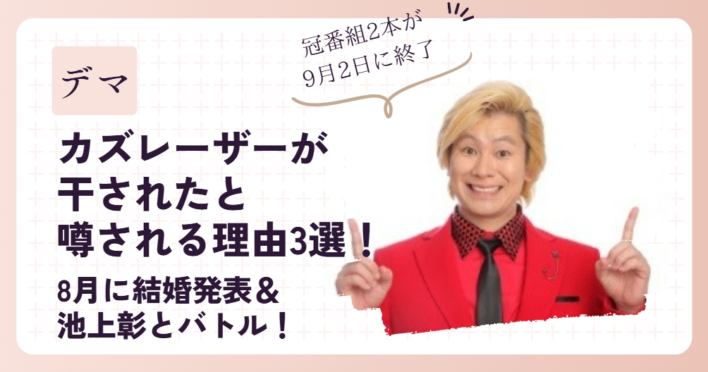 2025年9月頭、メイプル超合金のカズレーザーさんの冠番組2つが終了しました。 立て続けの番組終了に、カズレーザーさんは干されたのではないか?と噂されています。 え!あんなに人気なのに⁉ 今回はカズレーザーが干されたと噂される理由について調... -