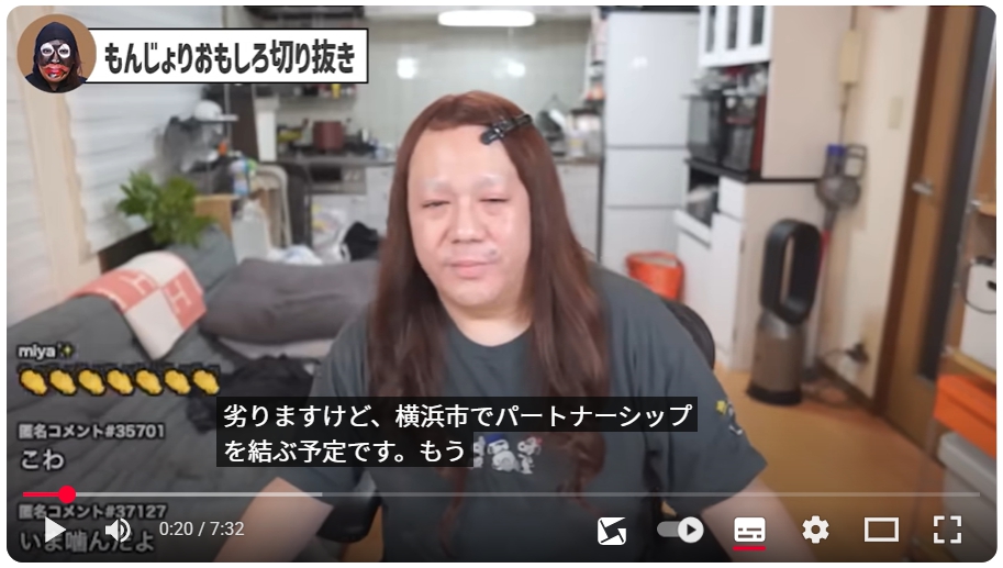 藤沢なな@もんじょりさんは、6月26日の『藤沢なな@もんじょりチャンネル』で、横浜でパートナーシップ予定であると報告しています。