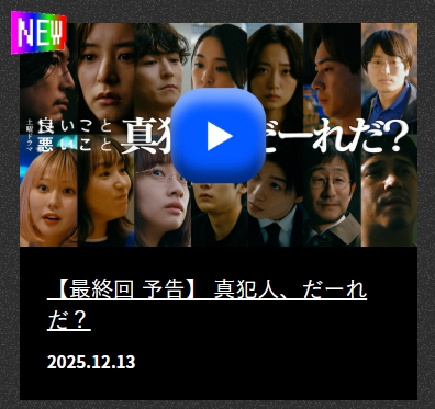 犯人が宇都見だとわかり、まるで最終回のような演出でしたが、実際の最終回は12月20日です。
