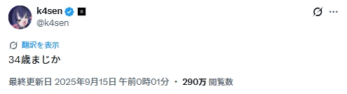 k4senさんは、配信や公式Xでよく年齢をネタにしています。