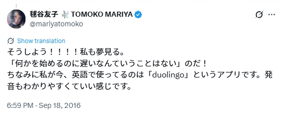 毬谷友子さんは公式Xで英語に関するポストも多くしているため、英語力に関して気にしている方も多い様子です。