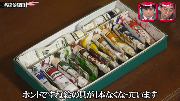 『名探偵津田』第4弾では、第3の殺人現場で、緑の絵具が無くなっています。