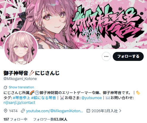 2026年4月19日、にじさんじから新人ライバーとしてデビューした御子神琴音さんが話題になっていますね。