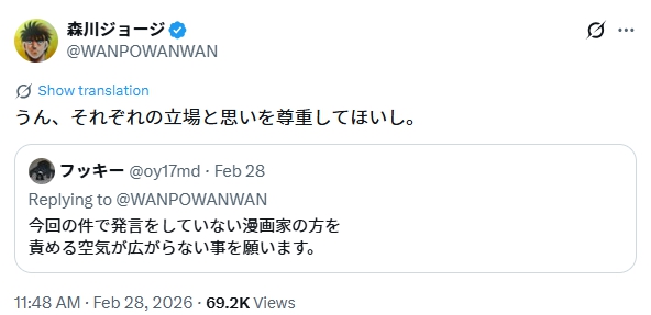 2026年3月、漫画家の森川ジョージさんの公式Xが炎上しています。