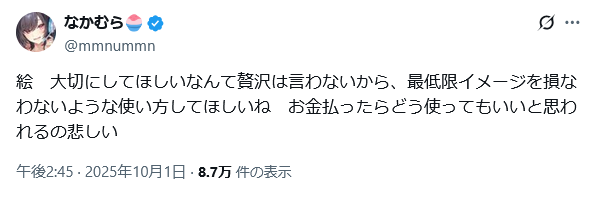 2025年10月2日、イラストレーターのなかむらさんのポストが話題になっていますね。