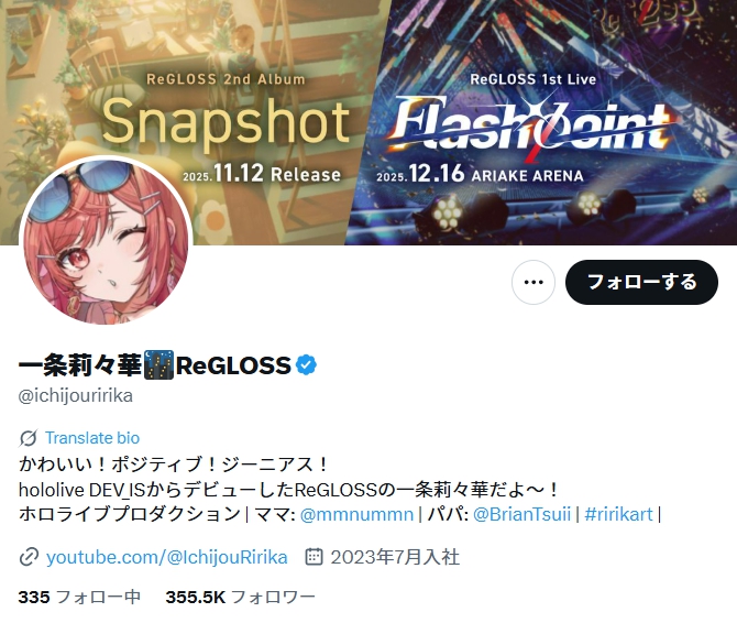 なかむらさんと一条莉々華さんはXの相互フォローをしていましたが、10月以降なかむらさんの一条莉々華さんのフォローが外れています。