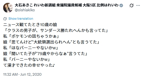 大石あきこさんのHPによると、