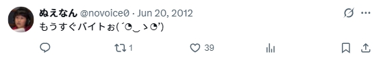 ぬえなん(@novoice0)は、ポスト内容にはよくバイトの記述があります。
