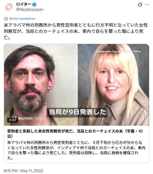 2022年にベテラン女性刑務官が囚人と恋愛関係になり、脱獄を助けて共に逃走しましたが、11日後に警察とカーチェイスの末に囚人は逮捕され、女性刑務官は自殺したという衝撃的な事件です。