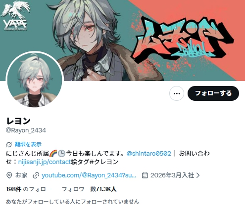 2026年4月19日、にじさんじから新人ライバーとしてデビューしたレヨンさんが話題になっていますね。