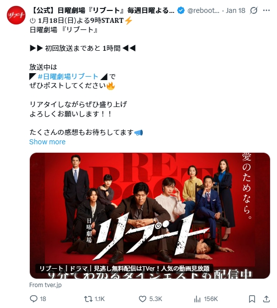 2026年1月18日よりドラマ「リブート」が放送開始し話題になっています。