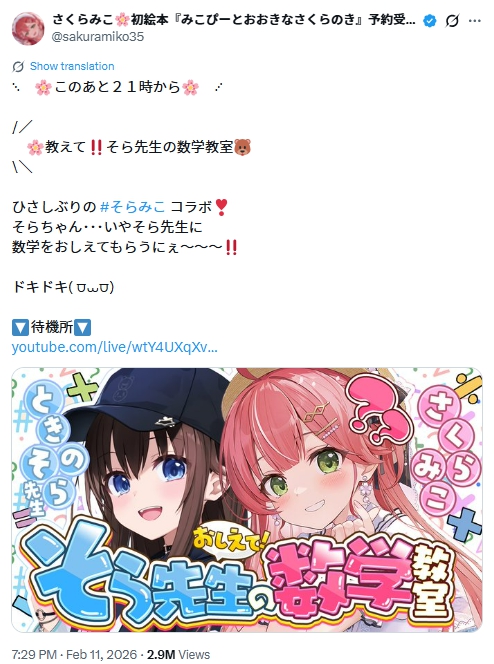 2026年2月11日、ホロライブ所属ライバーのさくらみこさんのコラボ配信のリスケが話題になっていますね。