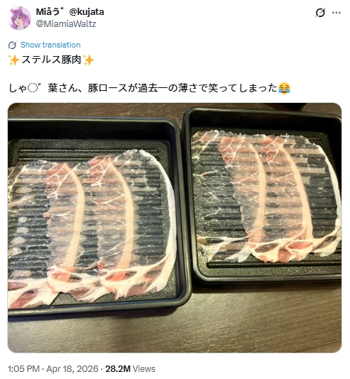 2026年4月18日、しゃぶしゃぶ食べ放題チェーン「しゃぶ葉」で提供された豚ロースが「薄すぎる」と、SNS上で話題になりました。