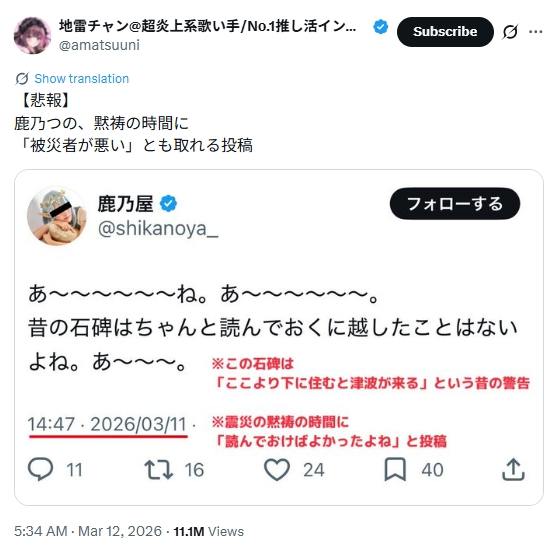 2026年3月、コスプレイヤーとして有名な鹿乃つのさんの東日本大震災への投稿が大炎上していました。 鹿乃つのさんは3月17日に震災の投稿について謝罪しましたが、ユーザー…
