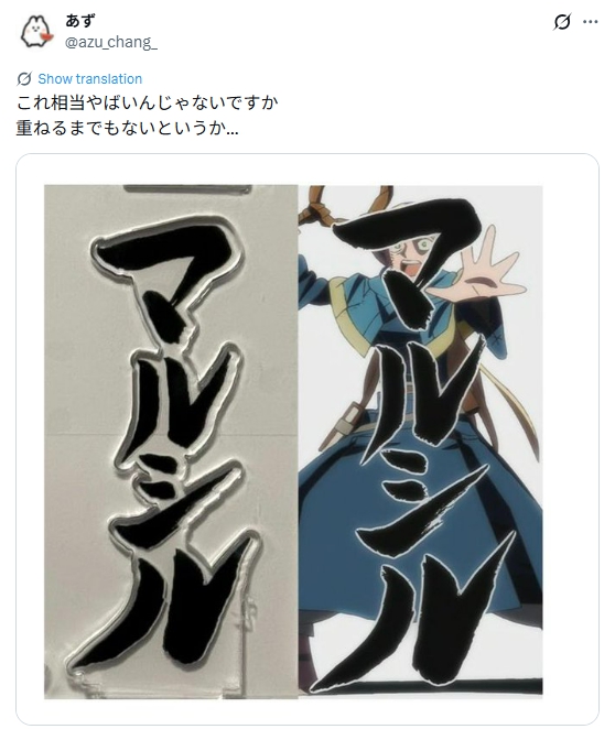 しかしアクスタのパーツの1つには、アニメ内で使用されたオリジナルの手書き文字を使用していました。