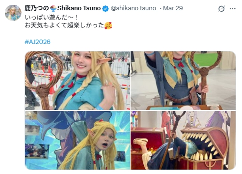 2026年3月29日、コスプレイヤーとして活動する鹿乃つのさんが、の「AnimeJapan 2026(以降:アニメジャパン)」で再び炎上しています。