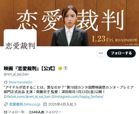 このように、1月23日公開の映画『恋愛裁判』の公式Xにて謝罪文が公開されました。