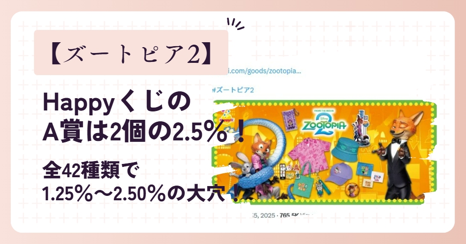 【2025年12月】ズートピアのHappyくじのA賞は2個2.5%!
