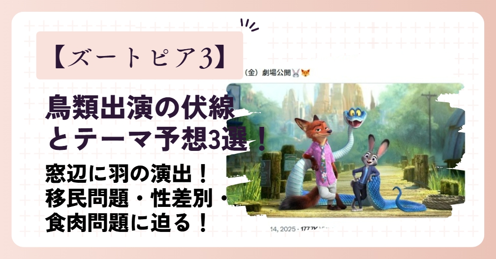 【ズートピア3】鳥類出演の伏線とテーマ予想3選!
